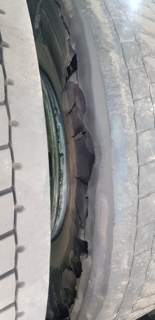 Today at work one the lads was doing a service and noticed a tyre blown, and I mean proper blown. I’ll show pictures don’t worry. The driver said he didn’t know about it, but a truck tyre blowing isn’t something you can’t hear or feel. So I really don’t know what happened there. Pretty conserning if I’m honest.