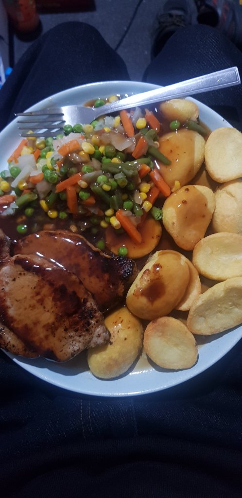 Pork chops from Aldi. I wasn’t going to go shopping there but it was lil man idea, and I’m glad he did. Tonight’s dinner in pictures, these pork chops were just u der £2. Very well worth it.