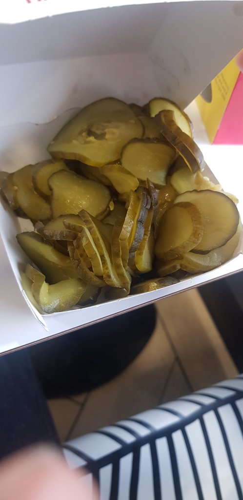 I took lil man to Macdonald’s today, he loved it. He loves girkins (yeah the only person I know who loves these green pickle thingys) so at the machine ordering I was trying to get more girkins on his burger. Failed, it only let’s you have the one on the happy meals. Let’s just say he was disappointed, so he turned round to the lady standing there and asked her for extra girkins on his burger.