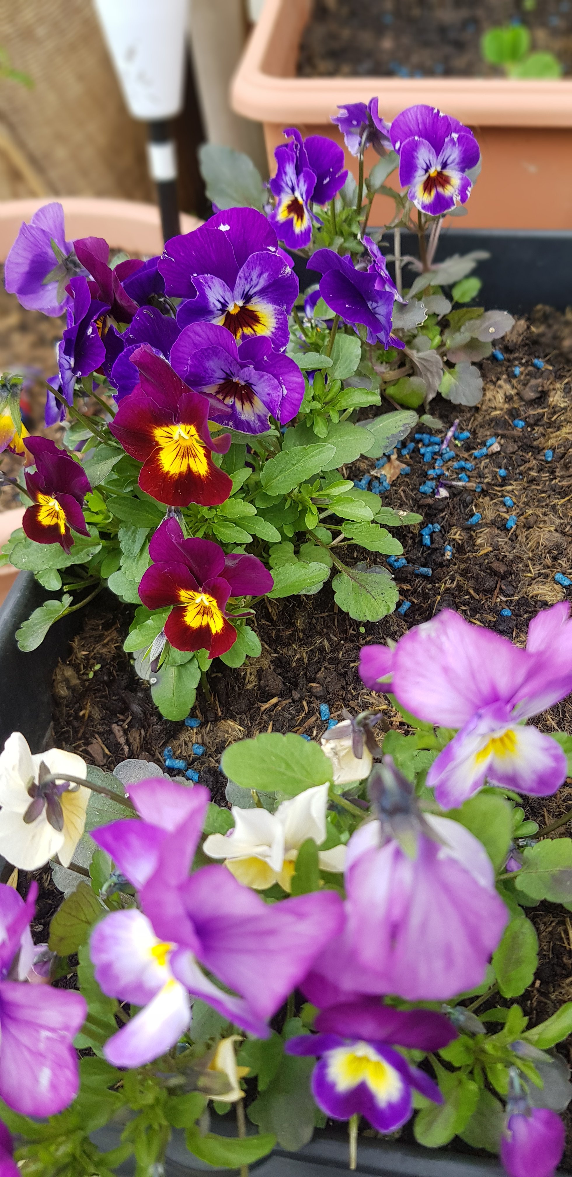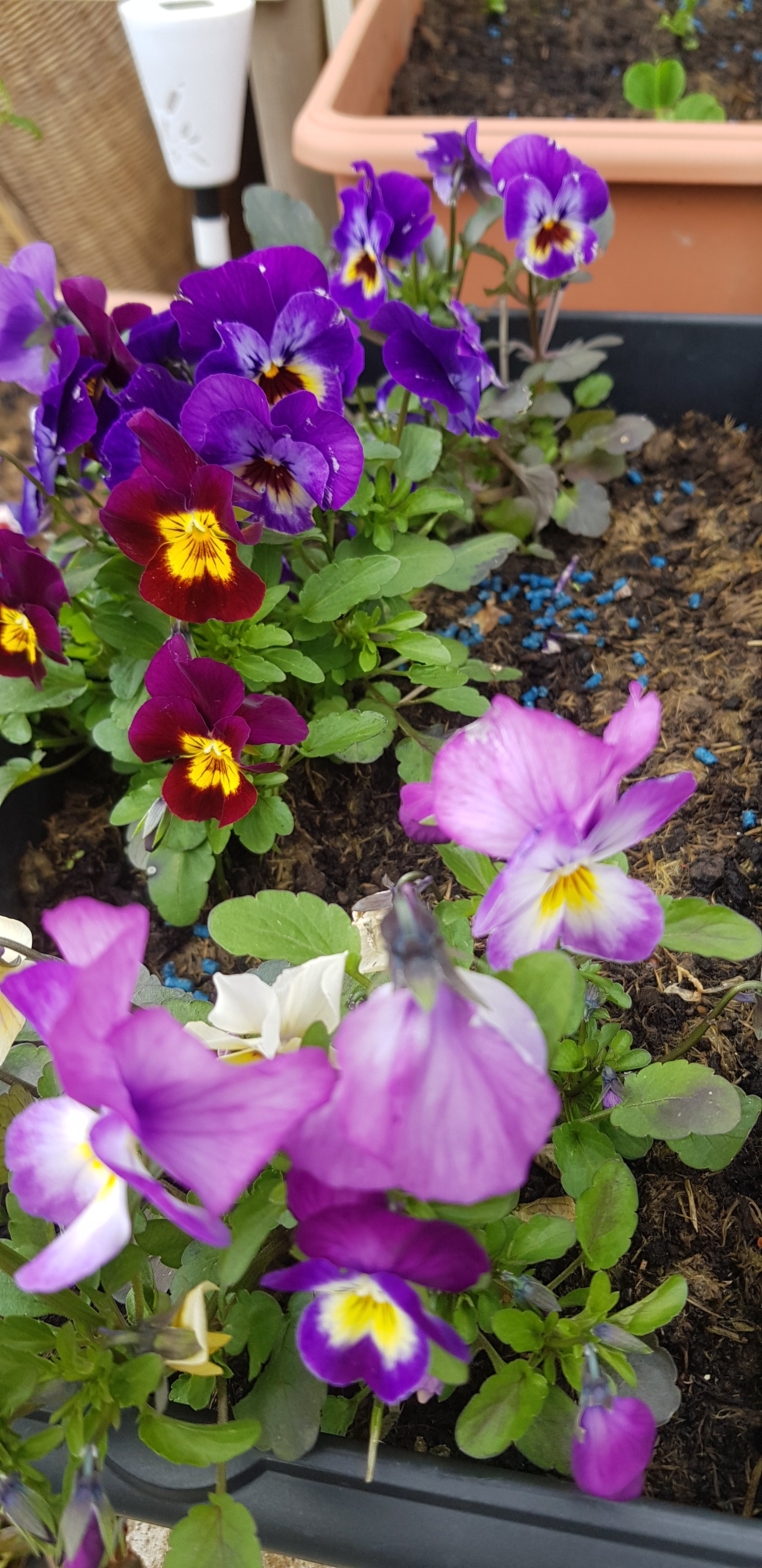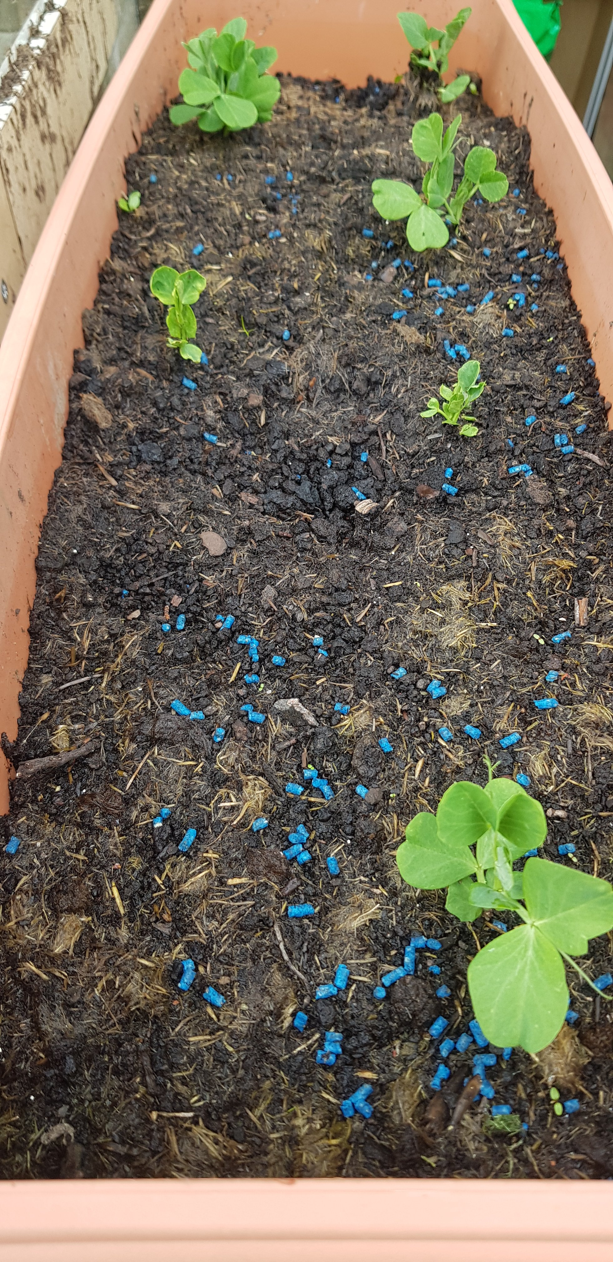 I’ll show pictures in a moment. The potatoes are growing like crazy, today we put the last top up of soil. So now all that has to do is grow, then once they flower and the flowers die off the potatoes will be ready for picking.