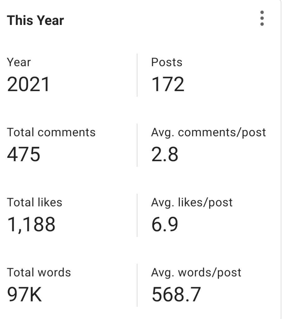 Anyway, here’s stats so far, I’ve had a fair few more followers, all appreciated and thank you for joining me in my corner of the internet.