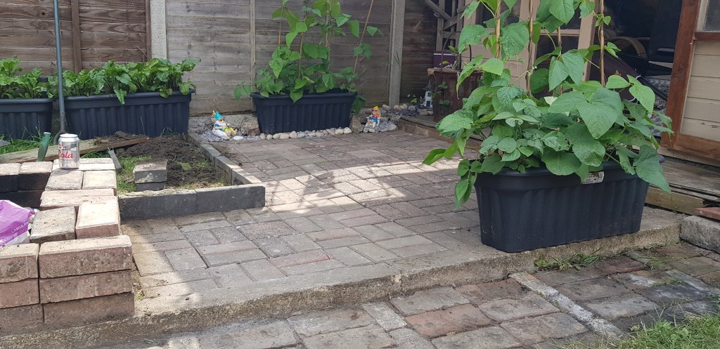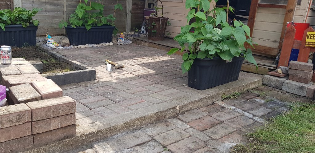 Had to dig out the grass and level it all out, and layed them properly. It was fun, but good to know I’ve not lost that skill from being taught by my step-dad.