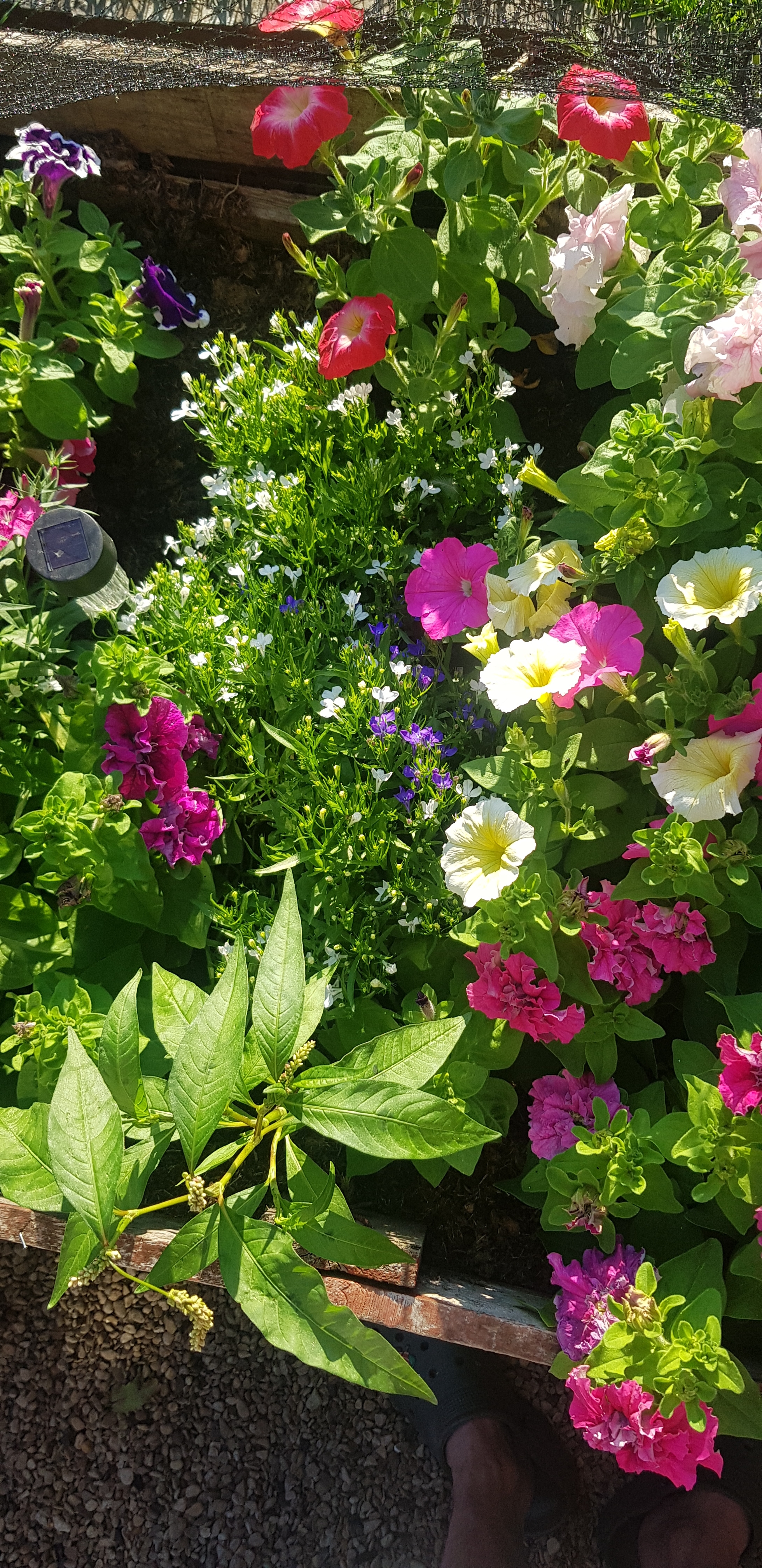 Bedding plats are huge, biggest I’ve ever seen. Petunias, labilias and nicotinas.