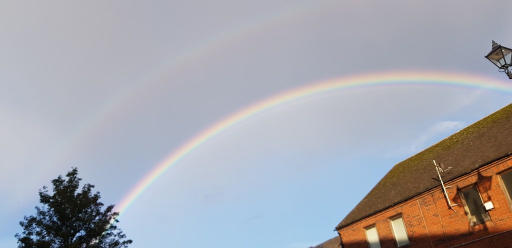 Next up, is some pretty things to see, while I was out with little man we saw a double rainbow, and the sun setting and shining round some clouds, which made for awesome viewing.